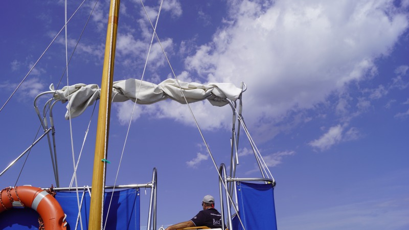 Werden wir Schweinswale sehen? Fast rechne ich nicht damit. Ich sitze auf dem Boden am Sonnendeck des Bootes, kein Platz ist mehr frei. Wir reduzieren die Geschwindigkeit, stellen das Echolot ab, fahren langsam und blind weiter.