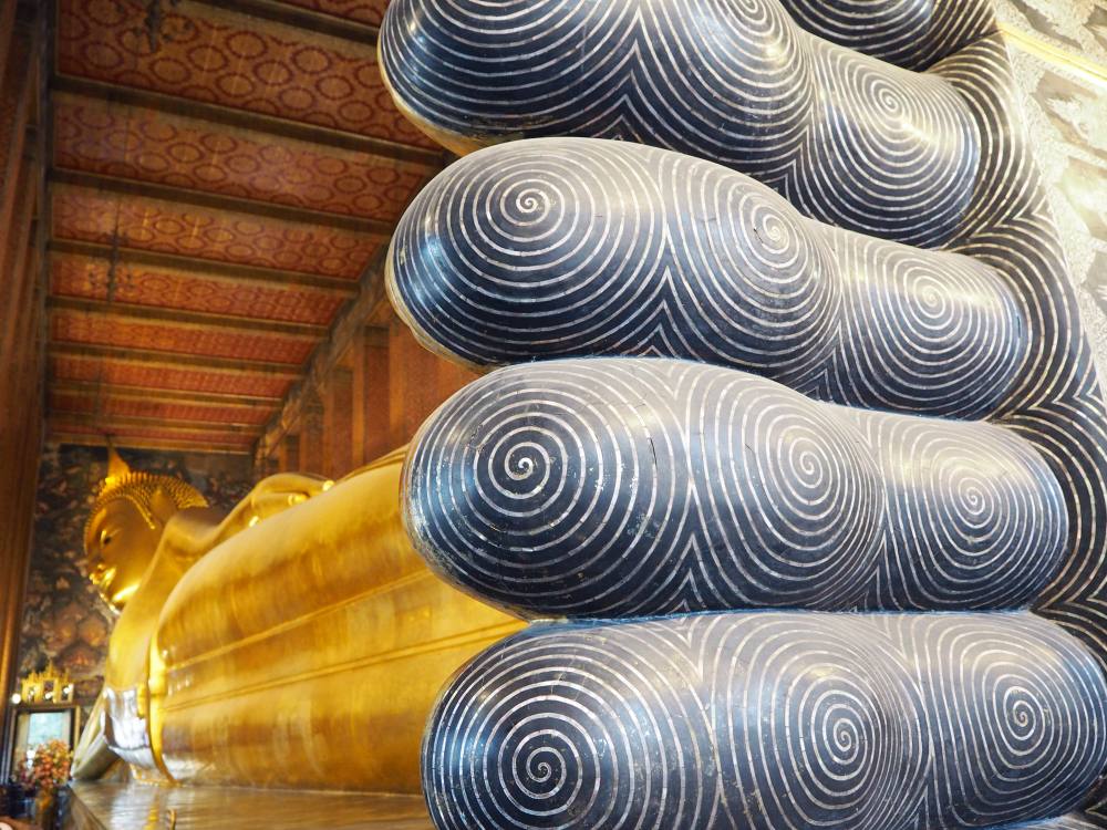 Zurück in Bangkok stehen noch ein paar Tempelbesuche an, unter anderem führt Nok mich zu Wat Pho, dem Liegenden Buddha. Die allwissende Begleiterin erzählt mir unter anderem von der eigenen Massageschule des Tempels. Die Räumlichkeiten sind in der Altstadt zu finden, sie liegen außerhalb der Tempelanlagen. Nichts wie hin! Nach dem ganzen Gelaufe entscheide ich mich für eine Fußmassage, die sich allerdings als Fuß-Unterschenkel-Massage mit vollem Kraftaufwand entpuppt. Ich halte durch. Immerhin gibt es danach einen schönen Kräutertee. Ein Gefühl von Frische durchströmt meinen Körper.